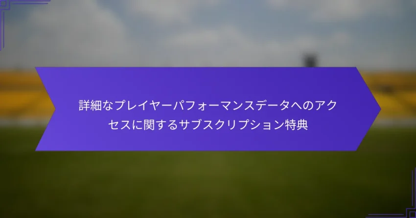 日本のサッカー選手の詳細な統計にアクセスするための購読は、パフォーマンスメトリクスの詳細、リアルタイムの更新、専門家の洞察など、ゲームの理解を深めるための多くの利点を提供します。この情報は、評価や戦略において競争優位を得ようとするファン、アナリスト、ファンタジーリーグ参加者にとって非常に貴重です。 日本のサッカー選手の統計を購読する主な利点は何ですか? 日本のサッカー選手の統計を購読することには、詳細なパフォーマンスメトリクス、リアルタイムの更新、ゲームの理解を深めるための専門家の洞察にアクセスできるなど、いくつかの利点があります。これらの利点は、競争優位を得ようとするファン、アナリスト、ファンタジーリーグ参加者にとって特に価値があります。 包括的な選手パフォーマンスデータへのアクセス 購読により、ゴール、アシスト、パス精度、守備行動など、選手のパフォーマンスのさまざまな側面に関する詳細な統計が提供されます。このデータは、選手がチームにどのように貢献しているかを評価し、試合における全体的な影響を理解するために重要です。 購読者は、シーズンやトーナメントを通じた比較を可能にする歴史的データを見つけることが期待できます。この情報の深さは、ファンやアナリストが選手の成長を追跡し、日本のサッカーにおける新たな才能を特定するのに役立ちます。 選手メトリクスのリアルタイム更新 購読者は選手メトリクスのリアルタイム更新を受け取り、最新のパフォーマンスや怪我について常に情報を得ることができます。この即時性は、特にファンタジーリーグのような動的な環境でタイムリーな決定を下すために重要です。 リアルタイムデータを使用することで、ユーザーは選手のフォームやフィットネスの変化を監視し、ラインアップや戦略に迅速に調整を加えることができます。この機能は、短期間に複数の試合が行われる忙しい試合週に特に有益です。 ファンタジーリーグのための意思決定の向上 詳細な統計とリアルタイムの更新へのアクセスは、ファンタジーリーグ参加者の意思決定を大幅に向上させます。購読者は選手のパフォーマンストレンドを分析し、トレード、ラインアップ、キャプテン選択について情報に基づいた選択を行うことができます。 包括的なデータを活用することで、ファンタジーリーグでの結果が向上し、ユーザーは過小評価されている選手や成長中の選手を特定することができます。この戦略的な優位性は、競争の激しいリーグで勝つか負けるかの違いになることがあります。 選手トレンドの詳細な分析 購読者は、時間の経過に伴うパフォーマンスのパターンを強調する選手トレンドの詳細な分析から利益を得ます。この分析は、選手の一貫性、プレッシャーの下でのパフォーマンス能力、怪我の影響を明らかにすることができます。 これらのトレンドを理解することで、ファンやアナリストは将来のパフォーマンスについてより正確な予測を行い、スポーツへの全体的な関与を高めることができます。この知識は、試合に賭けることに興味がある人々のためのベッティング戦略にも役立ちます。 専門家アナリストからの独占的な洞察 購読には、選手のパフォーマンスに関する解説や分析を提供する専門家アナリストからの独占的な洞察へのアクセスが含まれることがよくあります。これらの洞察は、生の統計では伝えられない戦術的役割やチームのダイナミクスをより深く理解する手助けとなります。 専門家の分析は、購読者が注目すべき重要な選手や採用すべき戦略を特定するのに役立ち、日本のサッカーを追う全体的な体験を豊かにします。このレベルの洞察は、真剣なファンやスポーツにおける分析スキルを向上させたい人々にとって非常に貴重です。 選手統計の購読料金はどのように機能しますか? 日本のサッカー選手の詳細な統計にアクセスするための購読料金は、通常、異なるアクセスレベルと機能を提供する階層プランを含みます。ユーザーは、自分のニーズに基づいてプランを選択でき、コストは提供されるデータの深さや追加サービスを反映することが多いです。 購読階層と料金モデルの概要 購読階層は一般的に基本からプレミアムまであり、価格はそれに応じて異なります。基本プランは月額約10ドルから20ドルで、基本的な統計を提供し、プレミアム階層は月額50ドルを超えることがあり、包括的な分析、歴史的データ、先進的な機能を提供します。 一部のプラットフォームでは、割引料金で年間購読を提供しており、ユーザーが長期的にコミットすることを促しています。これらのモデルは、個々の要件や予算に基づいて適切なプランを選択する柔軟性を提供します。 購読コストに影響を与える要因 選手統計の購読コストには、いくつかの要因が影響します。データの深さ、更新頻度、パーソナライズされた洞察やモバイルアクセスなどの追加機能は、価格